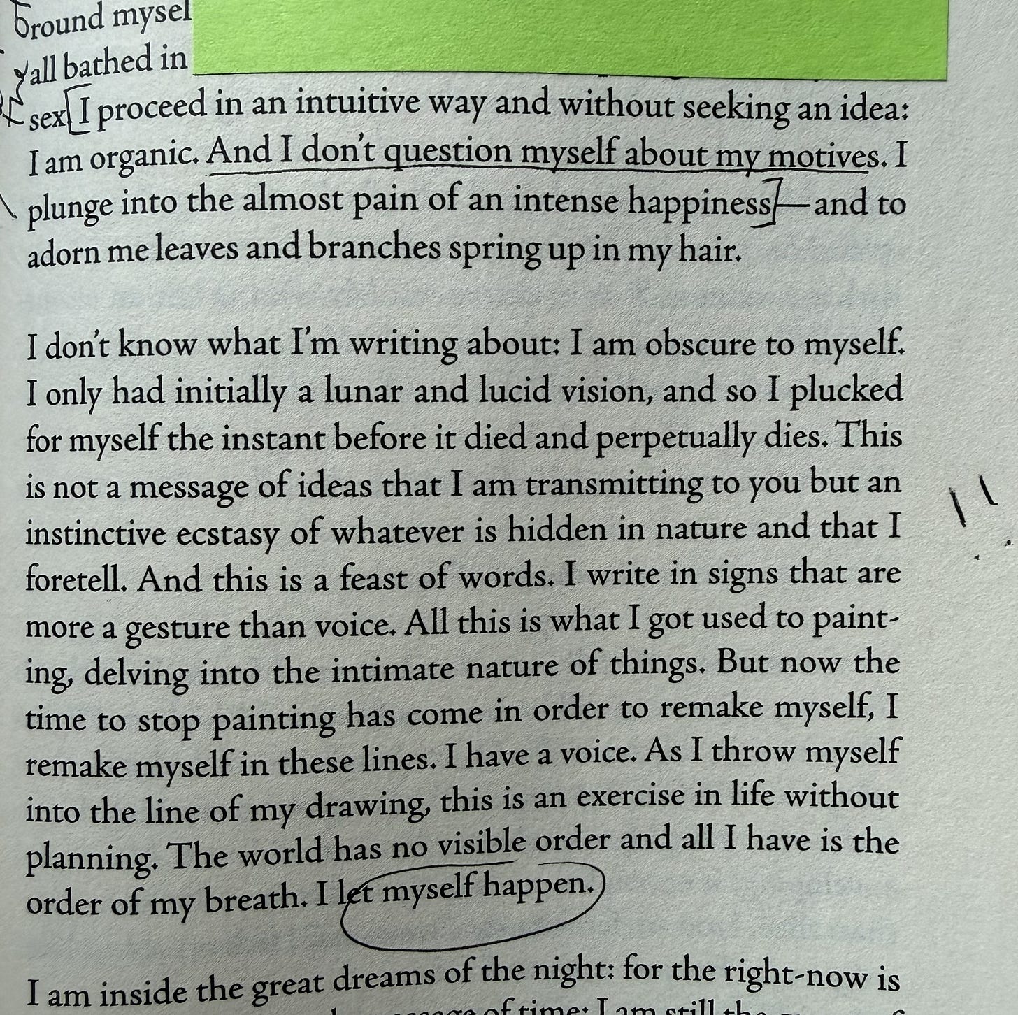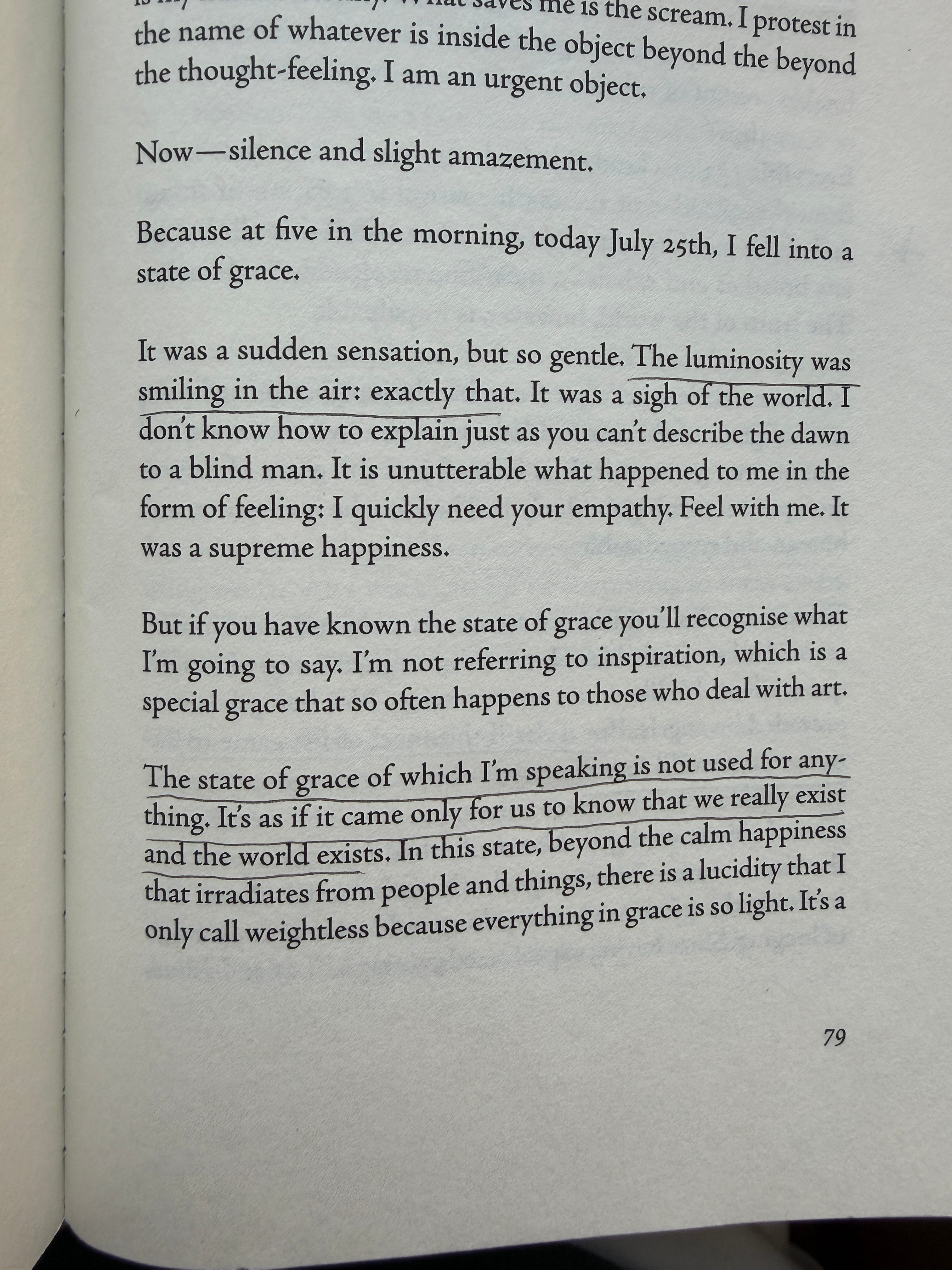 AGUA VIVA by Clarice Lispector has been my constant companion these last two months, and I loved so many passages I fear this section may get unwieldy. But I turned to it constantly; the book benefitted from morning visitations—small pieces, savoring. This book is so visceral but in a way I find difficult to explain. It’s as if thought were visceral. This book is the experience of a mind according to itself.