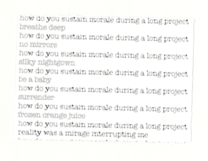 Sometimes I feel more interested in images than idea, which is maybe why I love poetry and other writing by poets. Wrong Norma by Anne Carson has been helpful this month, in bridging the gap between the poetic (fragmented, highly sensorial) and the prosaic in my current writing project. This is the third book I’ve read by Anne Carson and nothing may ever take the place of Autobiography of Red. That’s okay, I don’t want it to! Wrong Norma is a collection of unrelated short pieces ranging from full blown essay to one-paragraph prose poems and little snippets like this (great advice):